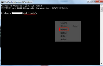 2.系统将弹出该黑色窗口,键入del *.sol /s